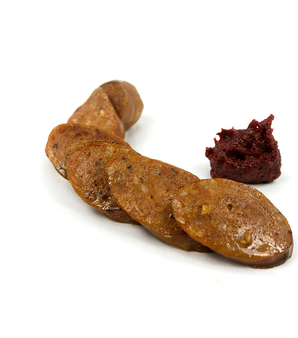 Saucisse de porc, veau et bœuf, avec un mélange explosif de Jalapeños, fromage et ail.